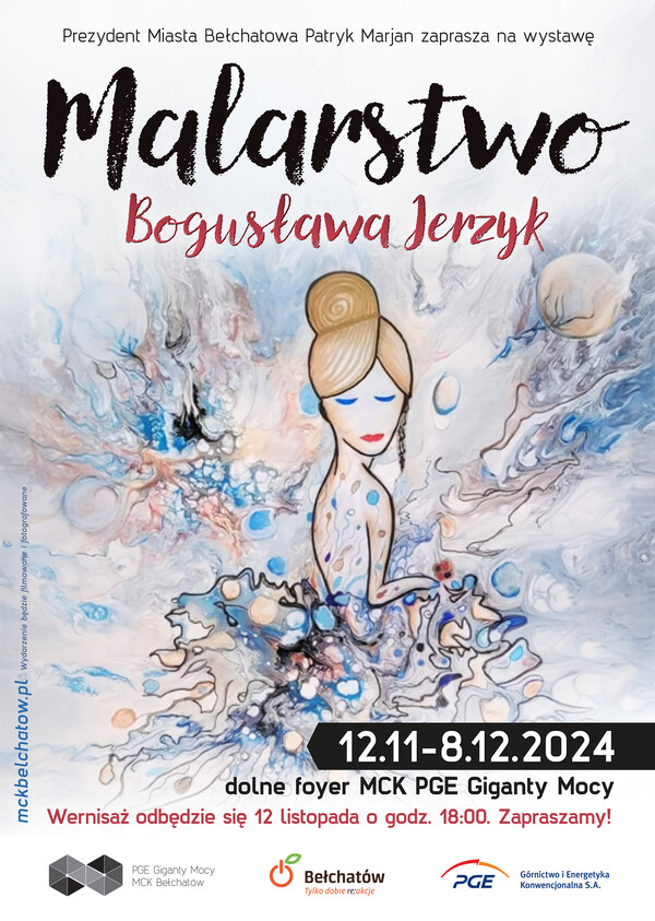 Prezydent Miasta Bełchatowa Patryk Marjan zaprasza na wernisaż wystawy „Malarstwa” Bogusławy Jerzyk, który odbędzie się 12 listopada br. o godzinie 18:00 na dolnym foyer MCK PGE Giganty Mocy.