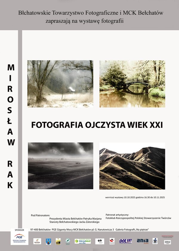 Druga z wystaw to autorska propozycja Mirosława Raka, nawiązująca do tradycji fotografii ojczystej, której początki sięgają okresu międzywojennego. Ideą nurtu było ukazywanie piękna rodzimego krajobrazu i otaczającej nas przyrody – jako przestrzeni wspólnej, budującej tożsamość i więź z miejscem, w którym żyjemy. W XXI wieku fotografia ojczysta nabiera nowego wymiaru – obok zachwytu nad naturą pojawia się refleksja nad jej kruchością, przemijaniem i koniecznością ochrony. Prace Mirosława Raka to wizualna opowieść o polskim pejzażu, w którym sacrum spotyka się z codziennością, a światło i cień prowadzą dialog z historią i współczesnością.