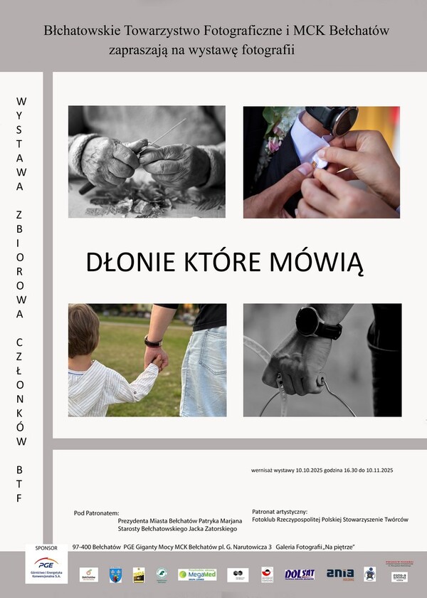 Bełchatowskie Towarzystwo Fotograficzne oraz Miejskie Centrum Kultury w Bełchatowie zapraszają na wernisaż wystaw „Dłonie, które mówią” oraz „Fotografia ojczysta. Wiek XXI”, który odbędzie się 10 października br. o godzinie 16:30 w Galerii „Na Piętrze”.